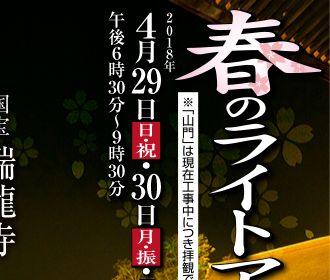 「国宝瑞龍寺 春のライトアップと門前市」のサイトは こちら