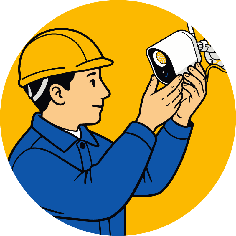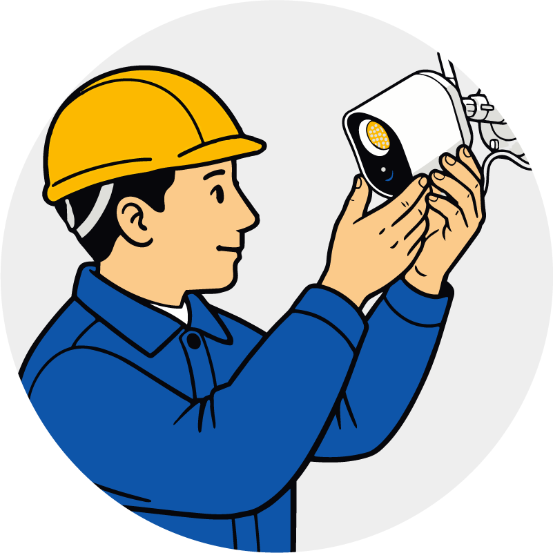 - 工事日当日は、カメラ設置工事に加え、アプリの使用方法から録画・機能設定までご説明させていただきます。